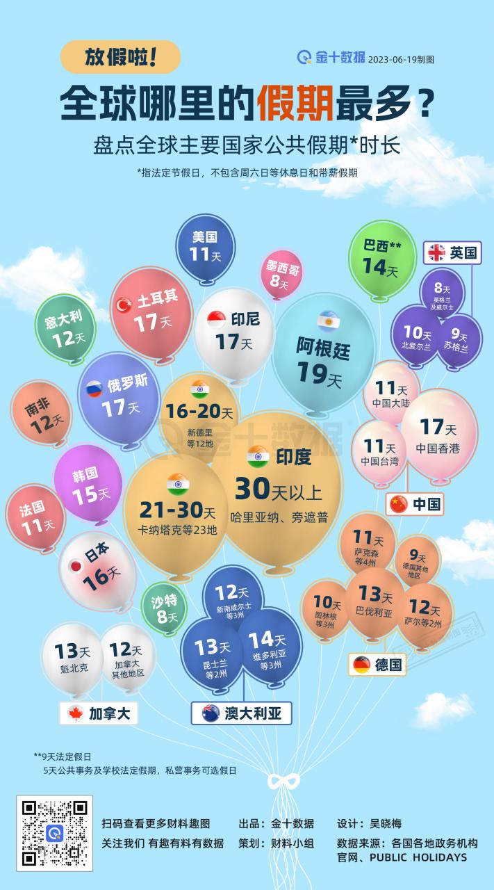 全球法定节假日盘点:假期最长33天,最短8天。放假最多的是哪里?